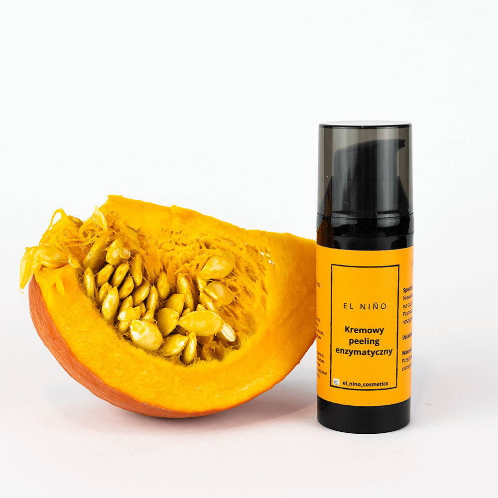Chcesz wyrównać koloryt skóry oraz dodać jej blasku? Dyniowy peeling enzymatyczny jest dla Ciebie. Peeling enzymatyczny to często pomijany ale bardzo ważny krok w pielęgnacji twarzy. Nagromadzony martwy naskórek utrudnia przenikania składników aktywnych, powoduje że skóra jest sucha i szorstka a tym samym zmarszczki są bardziej widoczne. Pomijanie peelingu enzymatycznego to także przyczyna powstawania trądziku i stanów zapalnych. Dlatego włącz peeling enzymatyczny do swojej pielęgnacji twarzy, wystarczy że użyjesz go 2 razy w tygodniu. Peeling enzymatyczny w przeciwieństwie do mechanicznego, to bardzo łagodna ale skuteczna metoda oczyszczania twarzy. Kosmetyk docenią osoby z cerą wrażliwą, trądzikową czy naczynkową. Peeling ma delikatną kremową formułę, bez wyczuwalnych drobinek jak w przypadku peelingu mechanicznego. Zatem nie musisz się obawiać że Twoja skóra zostanie podrażniona. Uwaga! Nie stosuj peelingu jeśli masz aktywne stany zapalne lub przerwany naskórek. Nie stosuj razem z retinolem! Jeśli w twojej wieczoren lub porannej pielęgnacji jest retinol, zrób dzień przerwy i dopiero użyj kremowy enzymatyczny peeling.